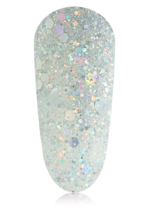 #Nofilter Cause this shade does not need it. These iridescent icy-toned glitter flakes are picture worthy on their own, no VCSO required. The mixed sized glitter pieces reflect light perfectly to create the ultimate ice-silver glitter shade whilst it also looks gorgeous layered over any other gel colour.